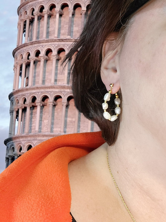 Freshwater White Pearl Hoop Short Dangle Gold Tone Earring (Copy)